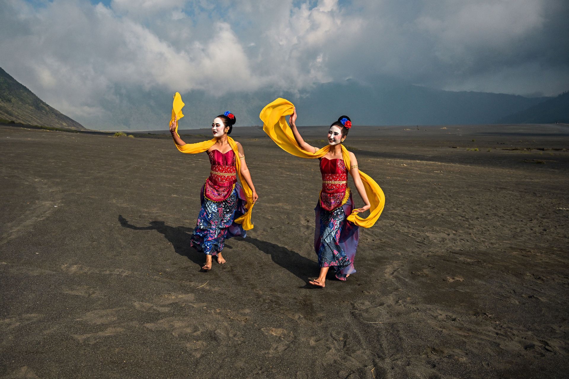 Dancers prepare to perform during the Eksotika Bromo cultural event near Mount Bromo in Probolinggo, in East Java on June 21, 2025. JUNI KRISWANTO / AFP