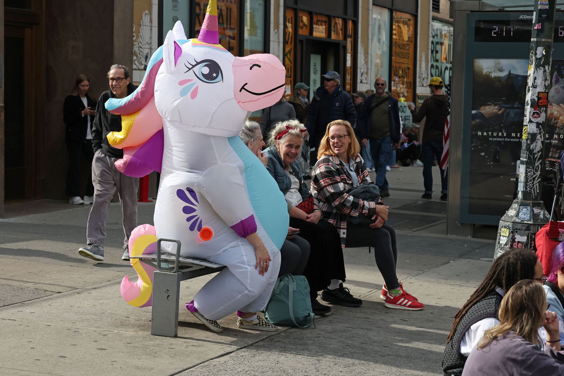 Protesters rally during the "No Kings" national day of protest in New York City on October 18, 2025. From New York to San Francisco, millions of Americans are expected to hit the streets to voice their anger over President Donald Trump's policies at nationwide "No Kings" protests. TIMOTHY A.CLARY / AFP